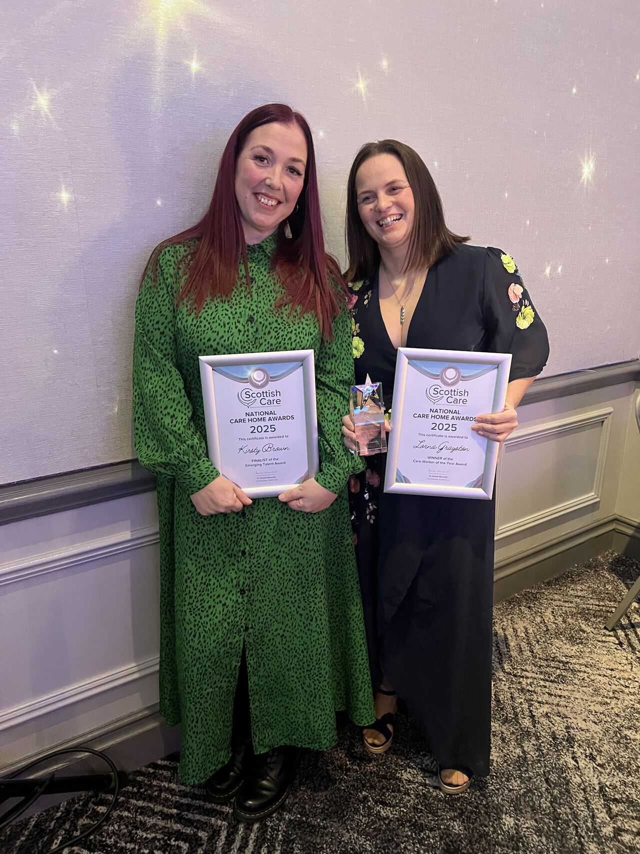 Director of Care, Derek Barron, said: “Although we work together as a team, wrapped around the care of our residents, it is important to pause and recognise the remarkable contributions made by individuals. Being shortlisted for two awards is a tremendous achievement, and Lorna’s win highlights the compassion, professionalism, and innovation she brings to Erskine every day. We are equally proud of Kirsty for being shortlisted; both exemplify the very best of our values, and it is wonderful to see their dedication acknowledged by peers across the Scottish care home sector. As the only veterans’ charity in Scotland offering care, support and accommodation for veterans across a variety of services we are incredibly proud of our people and the exceptional care and support they provide on a daily basis”.