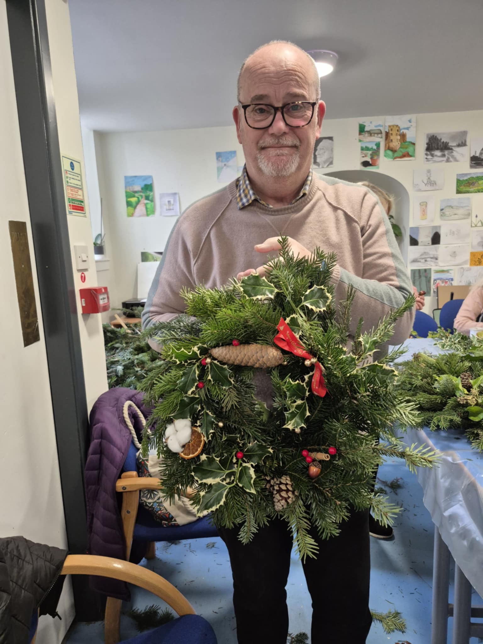 Ten members took part in the session, creating their own Christmas wreaths while enjoying a relaxed atmosphere, good conversation, and a chance to switch off from day-to-day pressures. The workshop offered more than a festive craft activity – it created time and space for connection, companionship and wellbeing, which can be especially important as winter sets in and the run-up to Christmas begins.