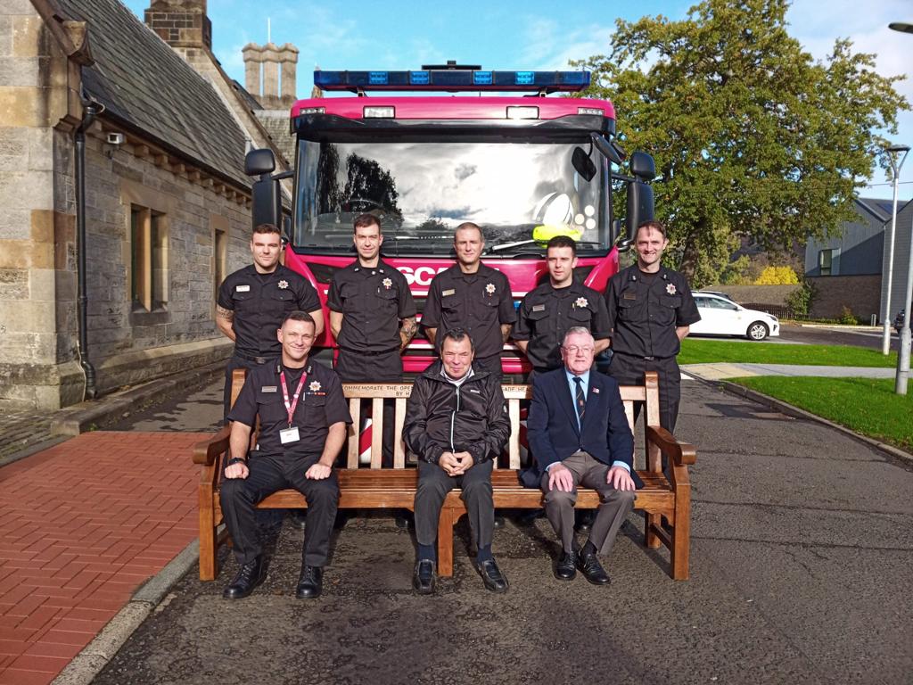 The park benches were duly presented to Erskine Hospital by Firemaster Halliday with Officers of the Service in attendance and in the presence of the Management and residents of Erskine Hospital.